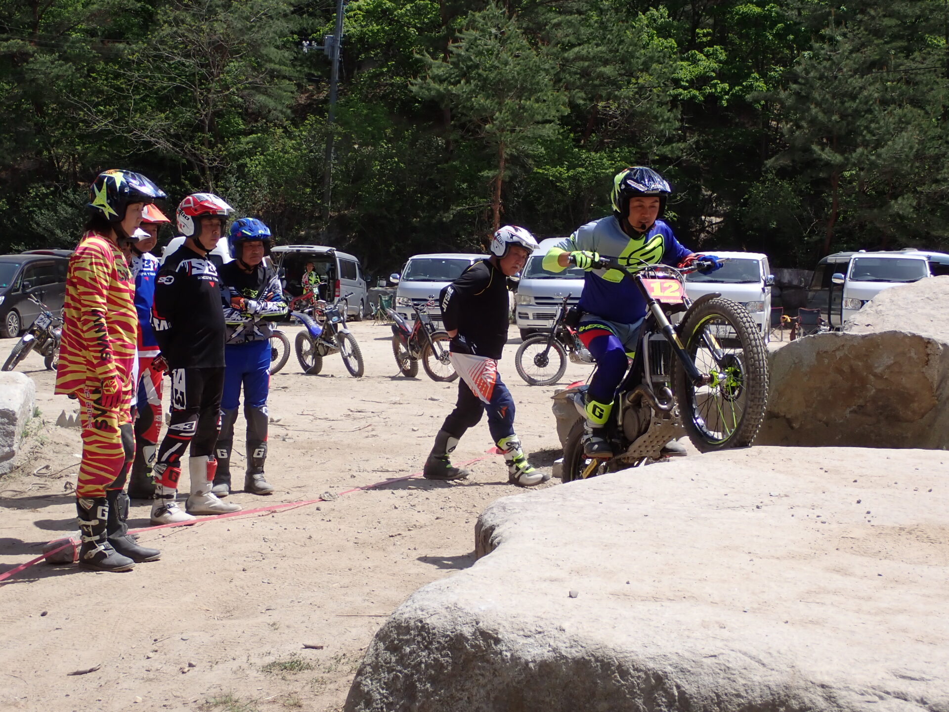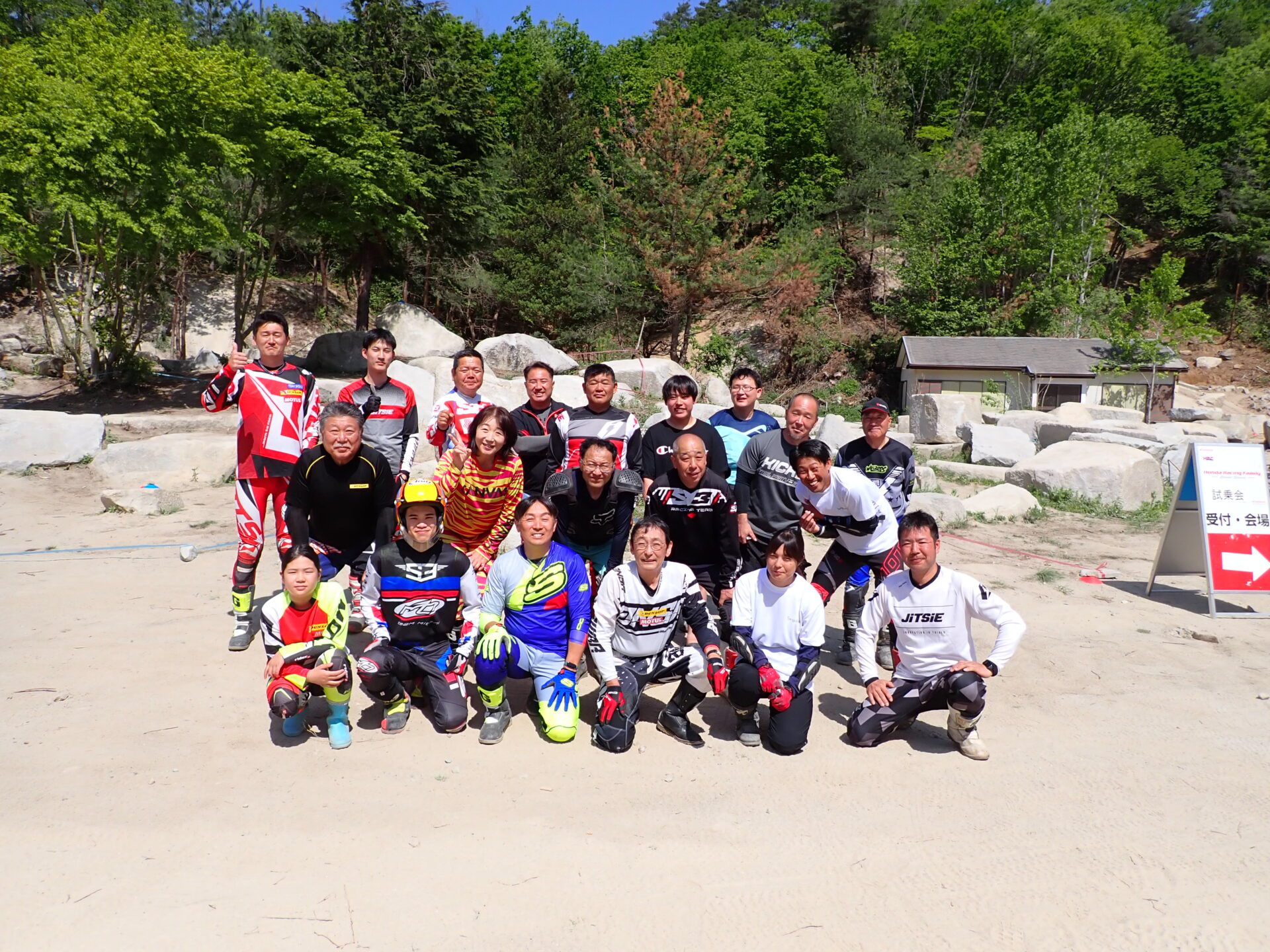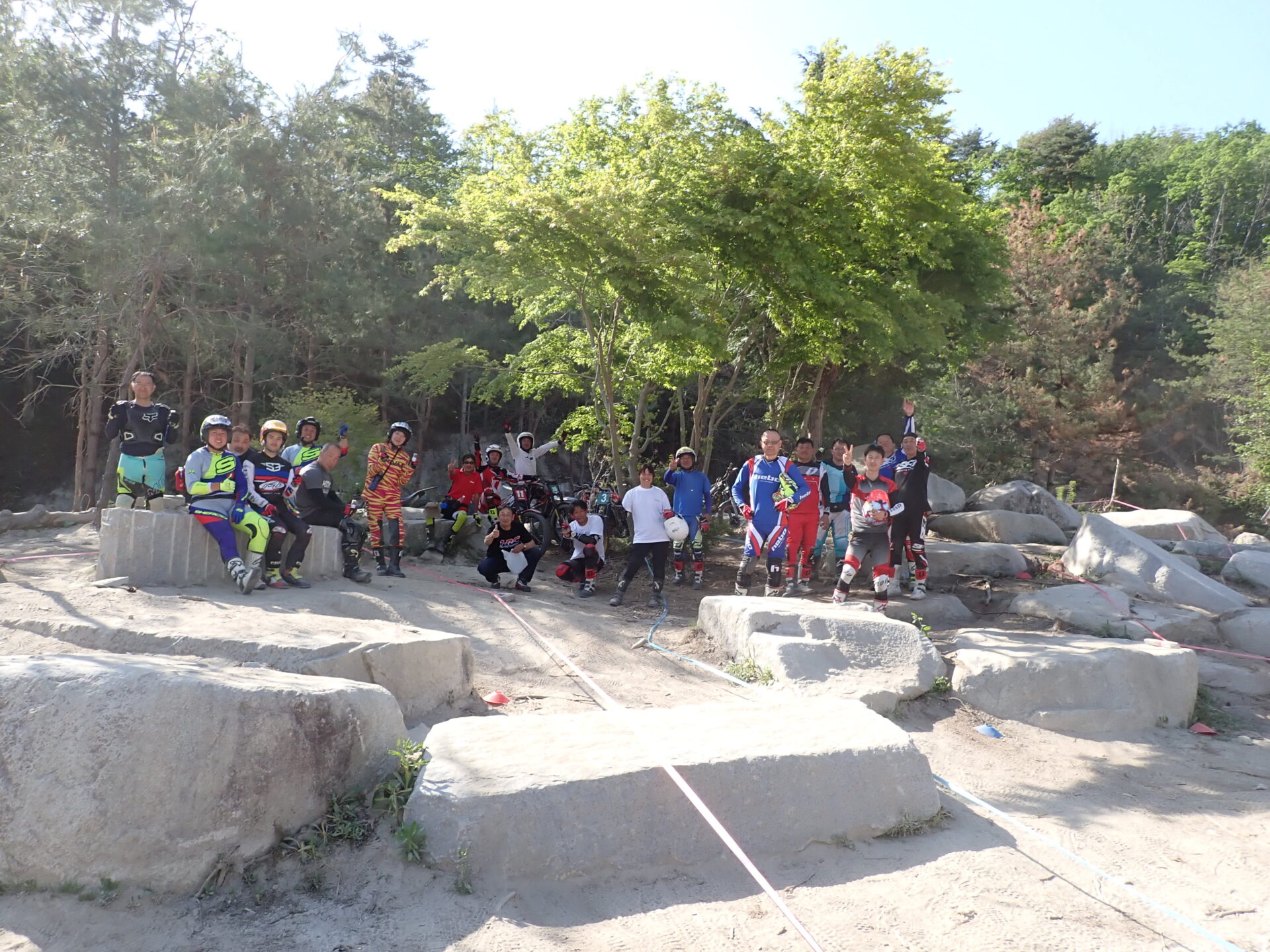 5月4日(祭日)に福島県天狗塚トライアルパークにて、IAS岡村将敏選手が講師によるおなじみオッカースクールIN天狗塚を開催されました。参加者がレディース、中級、上級者計16名でレベルUPを目指い汗を流しました。