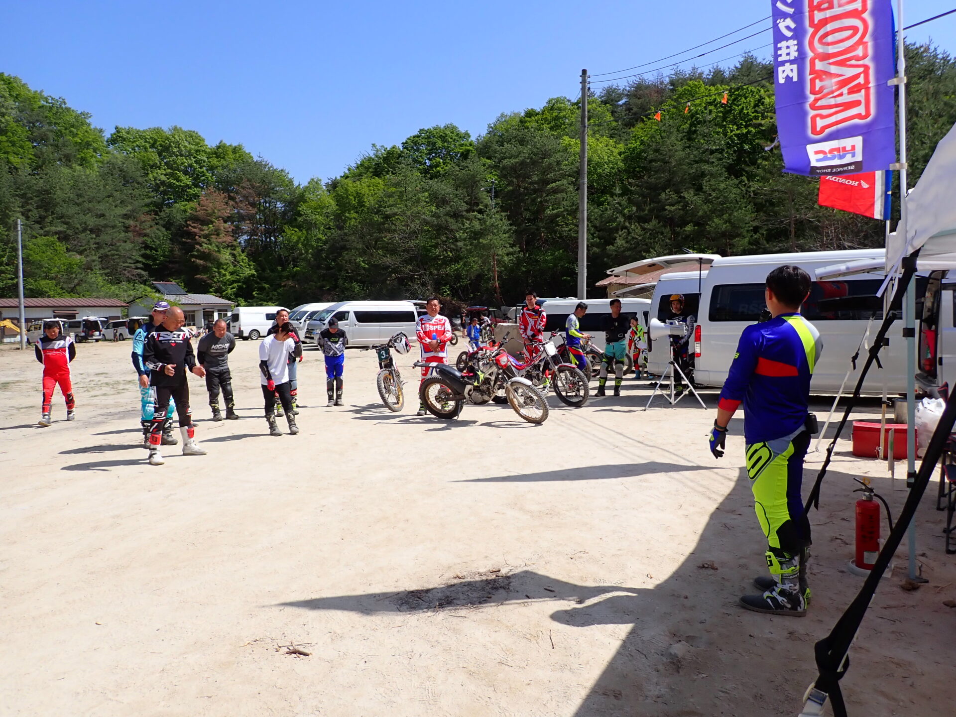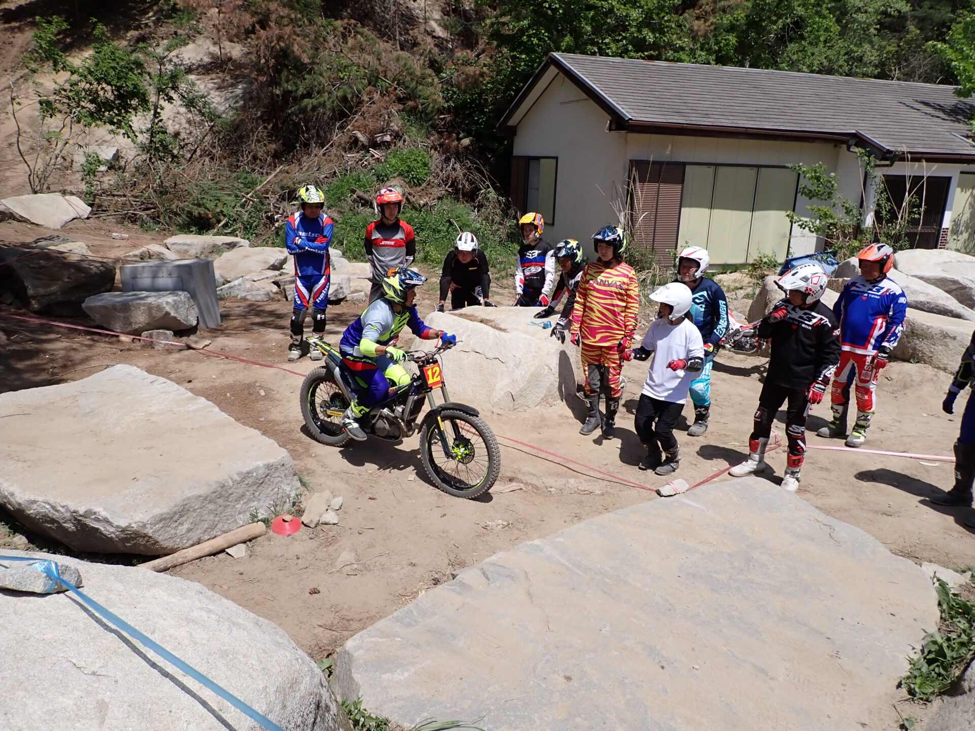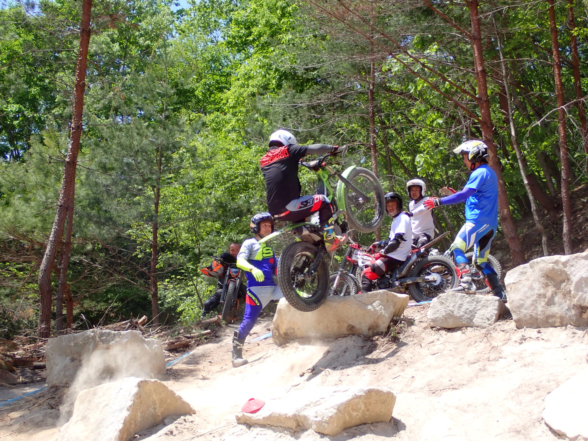 5月4日(祭日)に福島県天狗塚トライアルパークにて、IAS岡村将敏選手が講師によるおなじみオッカースクールIN天狗塚を開催されました。参加者がレディース、中級、上級者計16名でレベルUPを目指い汗を流しました。