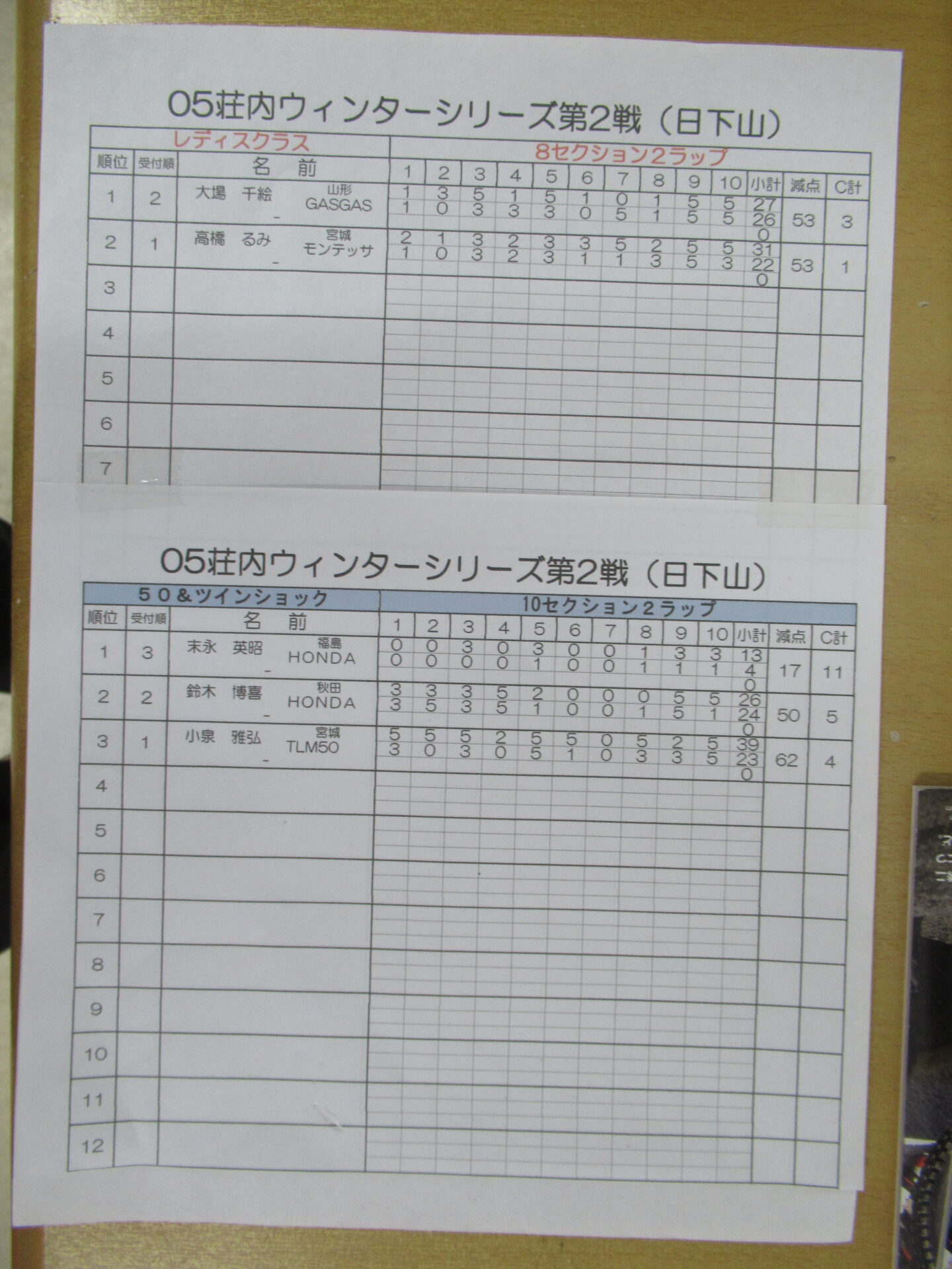 レディース、50&ツインクラスのリザルトです。
