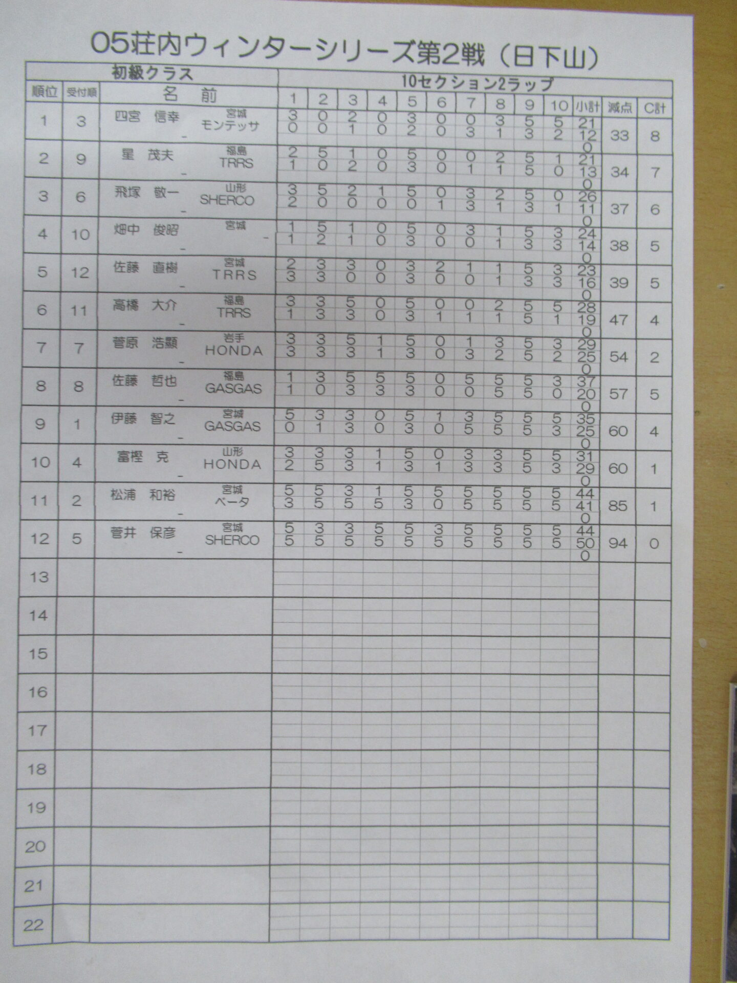 初級クラスのリザルトです。