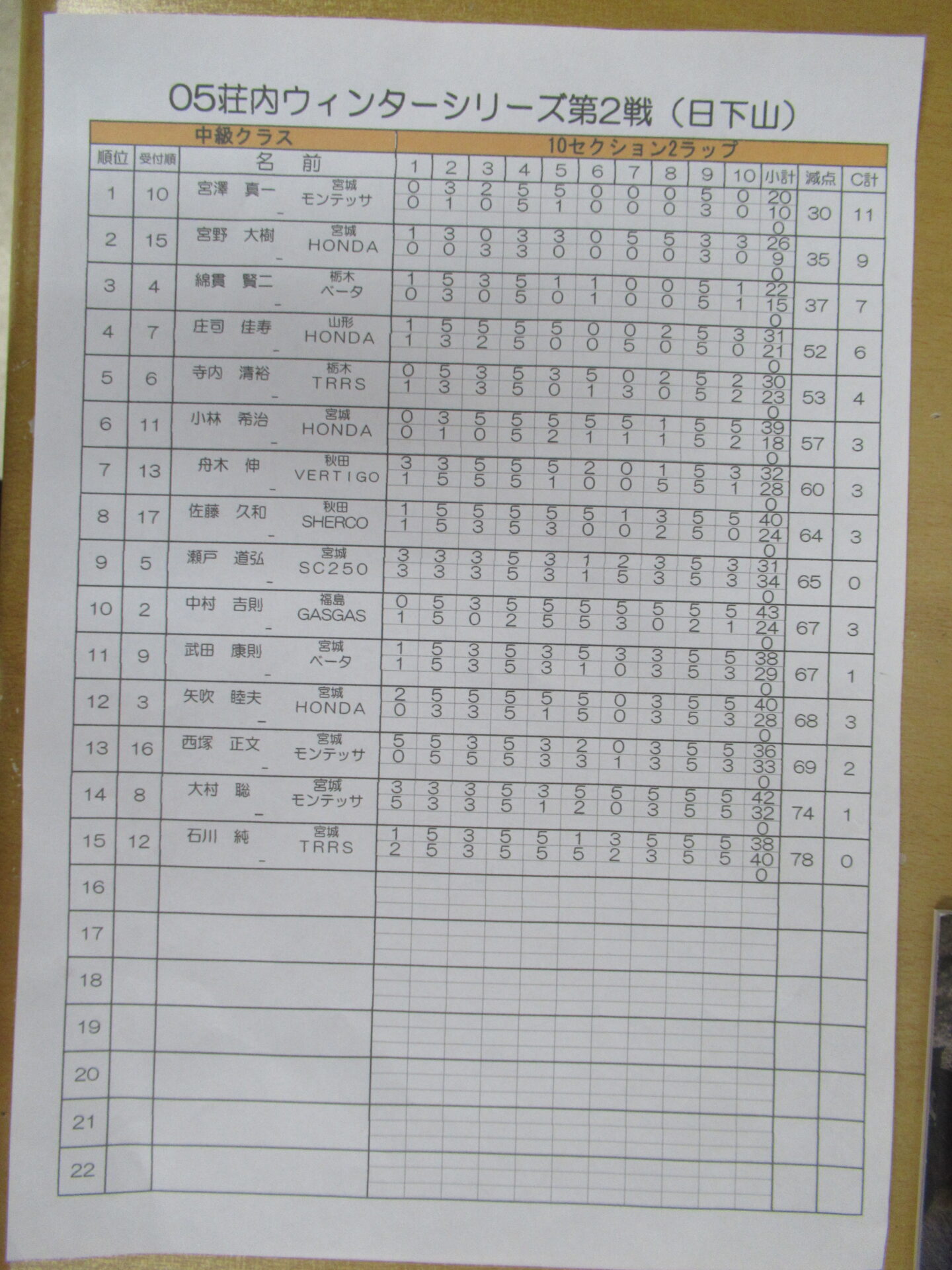 中級クラスのリザルトです。