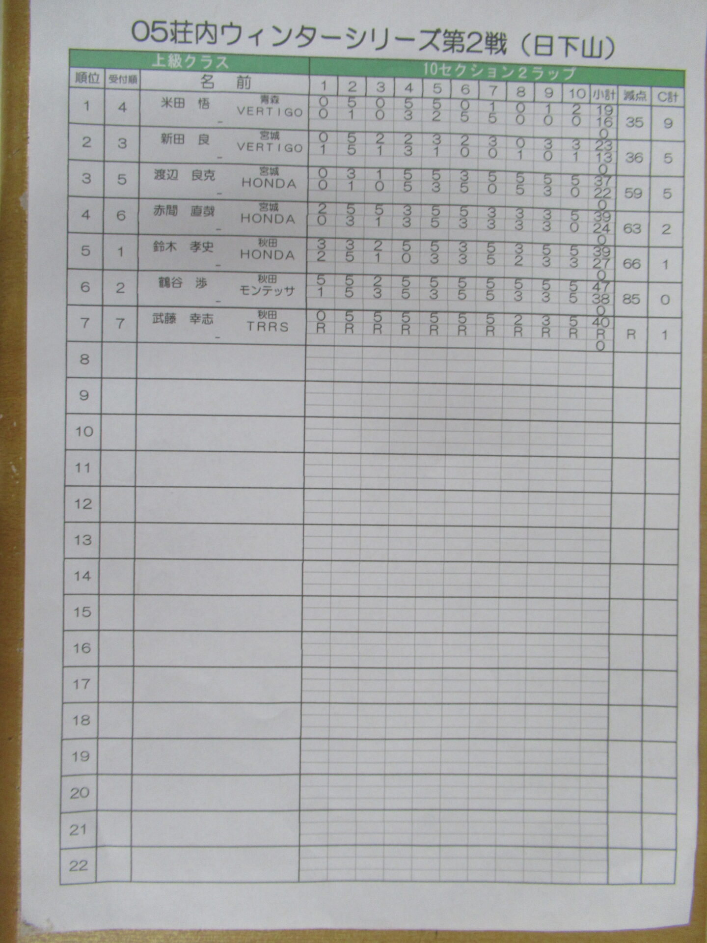 上級クラスのリザルトです。
