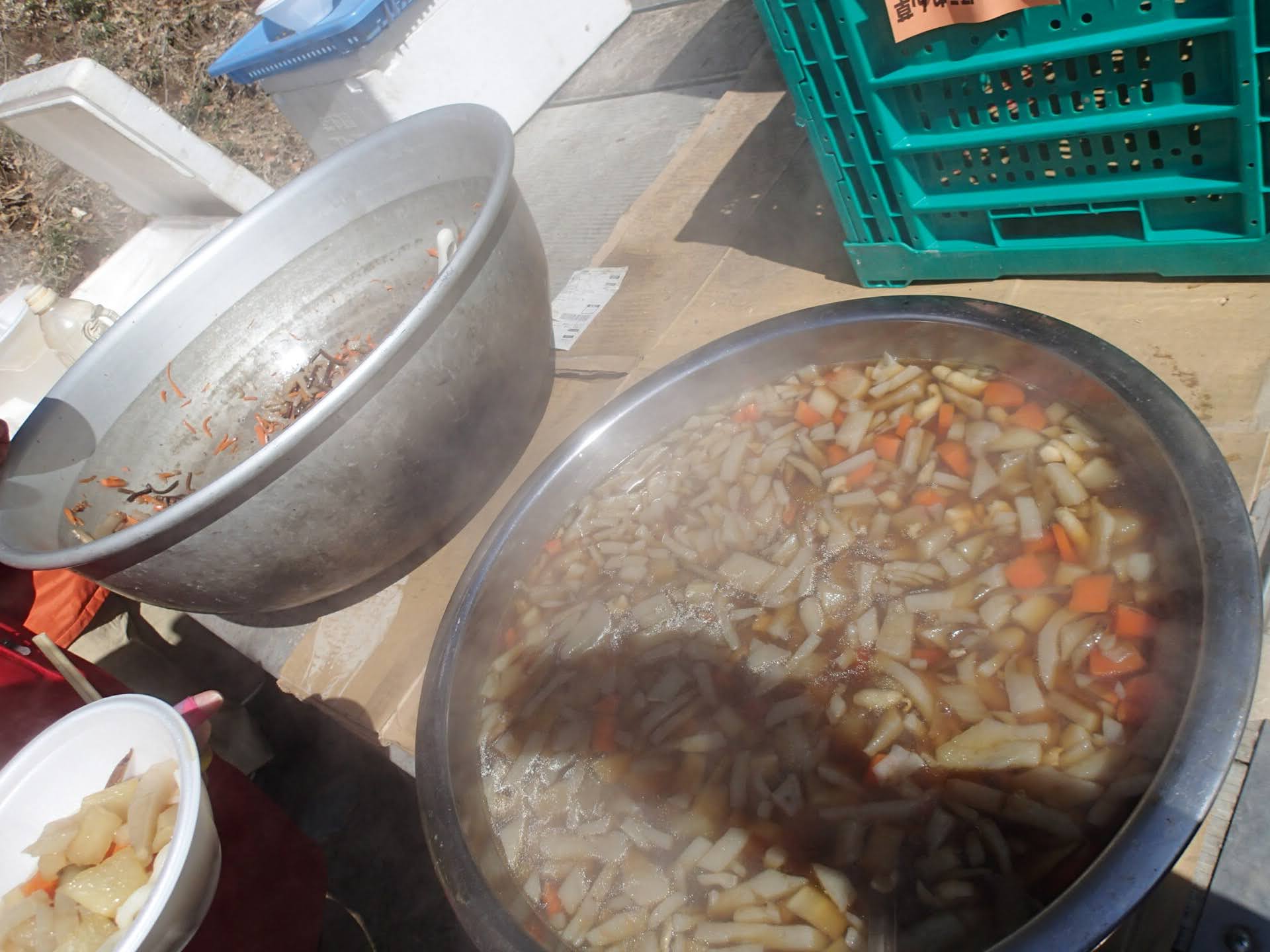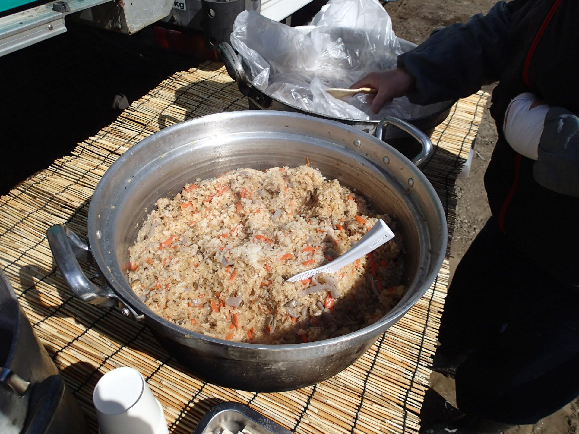 日下山は難しいと言われていますが?皆さんがっばています。12時が過ぎゴールして来ました。では小室シェフが作ってくれたお昼です。