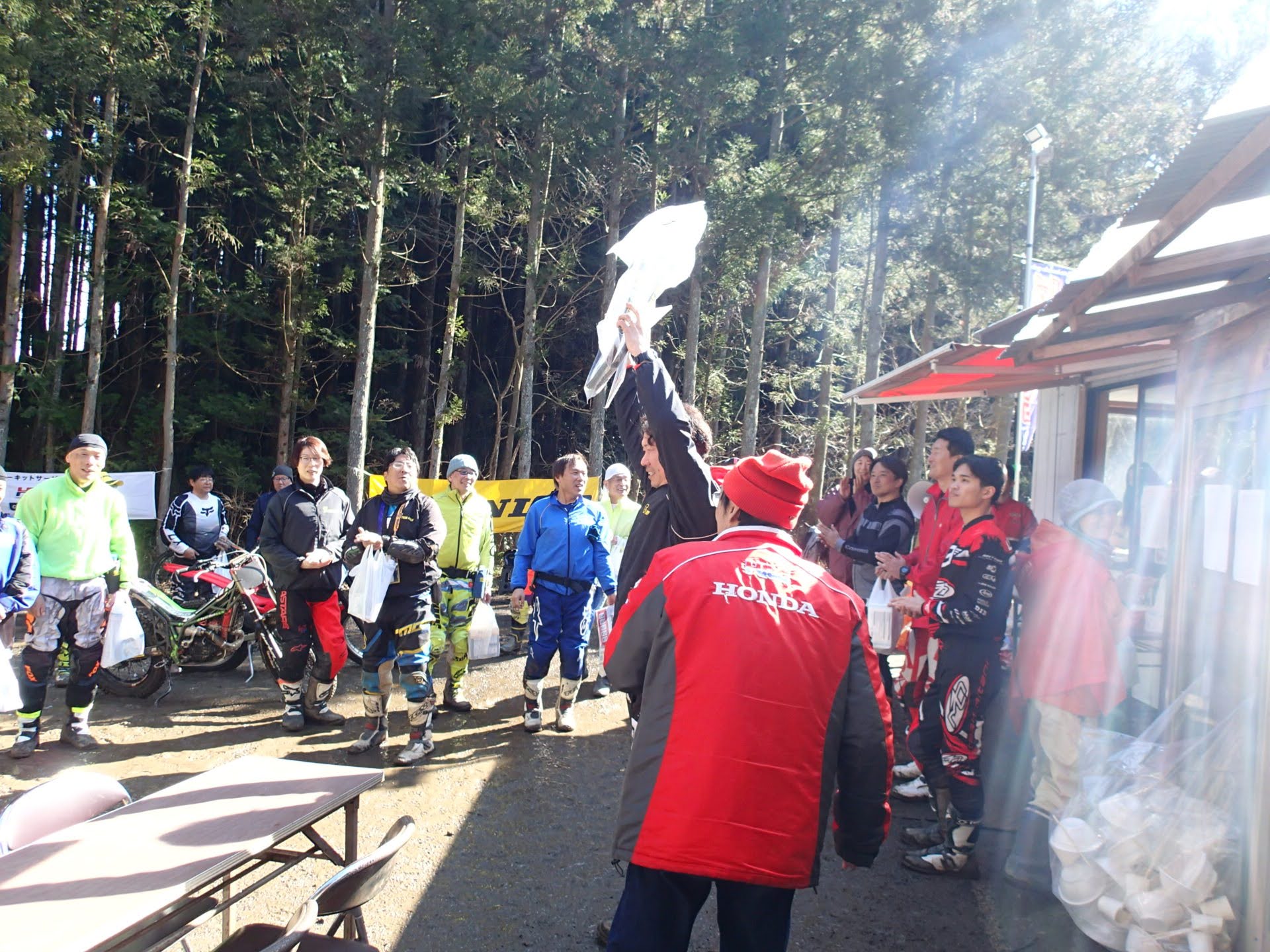 最後に恒例ジャンケン大会で寺内選手より提供バイクスタンドゲット!!